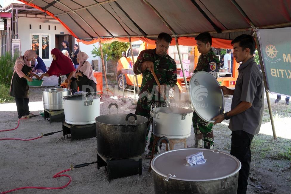“Kami memasak dengan bahan dari pasar dan donasi. Respons masyarakat sangat baik, dan aparat kelurahan serta kecamatan membantu pendistribusian karena personel kami fokus memasak,” tambahnya.