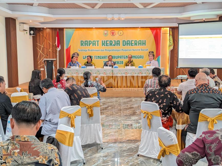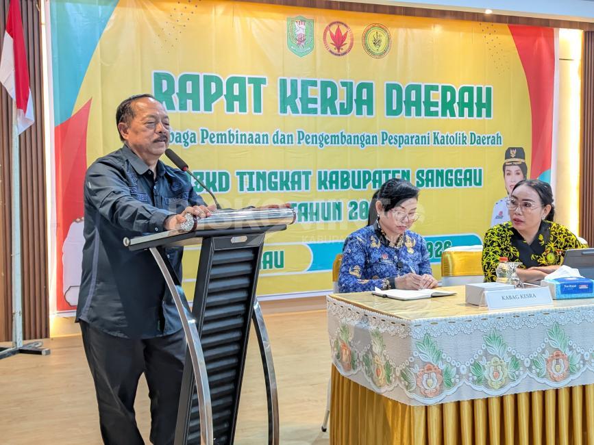 SANGGAU – Bupati Sanggau, Yohanes Ontot, bersama Wakil Bupati Sanggau, Susana Herpena, menghadiri kegiatan Rapat Kerja Daerah (Rakerda) Lembaga Pembinaan dan Pengembangan Pesparani Katolik Daerah (LP3KD) Kabupaten Sanggau, Jumat (17/4/2026).