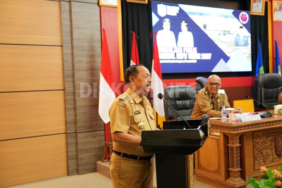 Dalam arahannya, Bupati menyampaikan tema pembangunan Kabupaten Sanggau Tahun 2027 yaitu “Peningkatan Pembangunan Menuju Sanggau Berkeadilan”, yang menekankan pemerataan hasil pembangunan bagi seluruh masyarakat.
