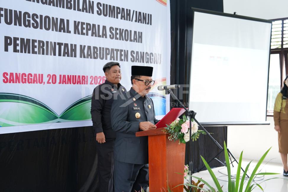 SANGGAU – Bupati Sanggau, Drs. Yohanes Ontot, M.Si, melantik dan mengambil sumpah janji kepala sekolah jenjang Pendidikan Anak Usia Dini (PAUD),Sekolah Dasar (SD),dan Sekolah Menengah Pertama (SMP) di lingkungan Pemerintah Kabupaten Sanggau. Kegiatan tersebut berlangsung di Aula SMP Negeri 2 Sanggau, Selasa (20/1/2026).