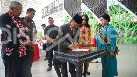 SANGGAU – Bupati Sanggau, Drs. Yohanes Ontot, M.Si di dampingi Wakil Bupati Sanggau, Susana Herpena, S.Sos., M.H menghadiri dan sekaligus mengukuhkan Ketua Tim Penggerak Pemberdayaan Kesejahteraan Keluarga (TP PKK),Pelantikan Pengurus TP PKK dan pelantikan Tim Pembina Posyandu Kabupaten Sanggau Masa Bhakti 2025 – 2030. Kegiatan bertempat di Aula Harvey Hotel Sanggau Kabupaten Sanggau. Selasa (15/4/2025).