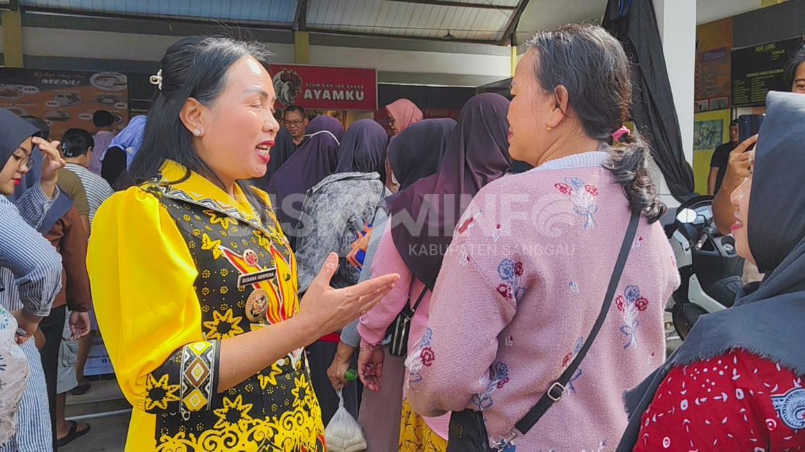 SANGGAU - Wakil Bupati Sanggau Susana Herpena S.Sos.,MH menerima aduan warga saat menghadiri gerakan pangan murah (GPM) khusus telur murah yang berlangsung di pasar Seroja Kelurahan Beringin Kecamatan Kapuas, Kamis (11/12/2025).