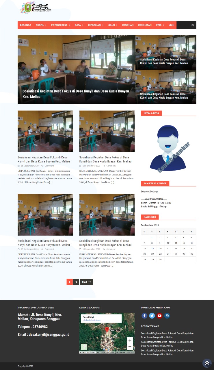 SANGGAU – Guna memastikan kesiapan Desa Kunyil dalam pemanfaatan website desa, tim dari Dinas Komunikasi dan Informatika (Diskominfo) Kabupaten Sanggau, Rabu 16 September -17 September 2020 telah melakukan pendampingan pemanfaatan website desa di Desa Kunyil, Kecamatan Meliau. Sehingga tim dari Bidang E-Government Dinas Kominfo melakukan pertemuan langsung dengan Kepala Desa Kunyil dan staf desa tentang pemanfaatan dengan adanya website desa sebagai layanan berbasis teknologi informasi, serta menjelaskan fungsi-fungsi konten yang ada di website.