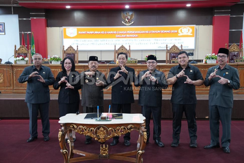 SANGGAU – Bupati Sanggau, Drs. Yohanes Ontot, M.Si di damping Wakil Bupati Sanggau, Susana Herpena, S.Sos., M.H dan Sekretaris Daerah Kabupaten Sanggau, Drs. Aswin Khatib, M.Si menghadiri Rapat Paripurna dalam rangka penyampaikan rekomendasi terhadap Laporan Keterangan Pertanggungjawaban (LKPj) Bupati Sanggau Tahun Anggaran 2025. Kegiatan di pusatkan di Aula DPRD Kabupaten Sanggau, Senin (30/03/2026).