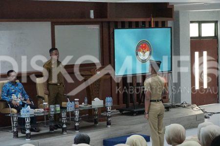 Kadis Kominfo Kabupaten Sanggau, Joni Irwanto dalam materinya menjelaskan tentang arsitektur Sistem Pemerintahan Berbasis Elektronik (SPBE) kepada para Praja Muda yang akan segera melaksanakan tugas lapangan di wilayah Kabupaten Sanggau.