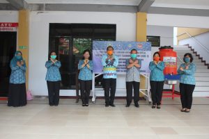 Dalam upaya mencegah pandemi Corona virus Disease 19 (Covid-19) di tengah masyarakat khususnya di Kabupaten Sanggau, Ir.Kukuh Triyatmaka, MM sebagai Pejabat Tinggi Pratama Sekretaris Daerah (Sekda) Kabupaten Sanggau dan Ketua Tim Penggerak Pemberdayaan dan Kesejahteraan Keluarga (TP-PKK) Kabupaten Sanggau, Ny. Arita Apolina, S.Pd, M.Si menyerahkan masker yang merupakan hasil handmade (buatan tangan) dari anggota PKK Kabupaten Sanggau dan sekaligus menyerahkan pelengkapan alat pelindung diri (APD) untuk para medis, adapun bantuan kecamatan yang diberikan yaitu Kecamatan.Toba, Kecamatan.Balai dan Kecamatan.Meliau.