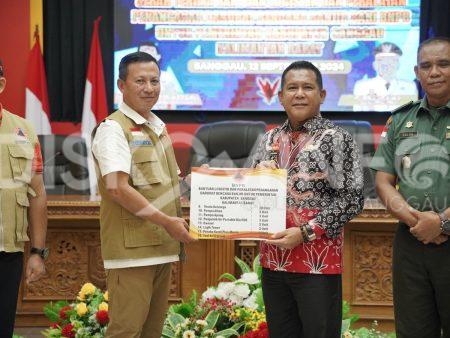 SANGGAU – Badan Nasional Penanggulangan Bencana (BNPB) melalui Staf Ahli Kepala BNPB Mayjen. Denny Herman menghadiri sekaligus memberikan bantuan logistik dan peralatan penanganan darurat bencana banjir dan longsor untuk Pemerintah Kabupaten Sanggau. Kegiatan bertempat di Ruang Daranante Kantor Bupati Sanggau Kabupaten Sanggau. Kamis (12/9/2024).