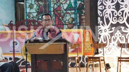 SANGGAU – Penjabat Bupati Sanggau, Suherman, S.H., M.H., menghadiri Pertemuan Komisi Komunikasi Sosial (KOMSOS) Se-Regio Kalimantan yang berlangsung di Mega Tenda Youth Center Paroki Katedral Hati Kudus Yesus, Kabupaten Sanggau. Acara ini berlangsung mulai dari tanggal 19 hingga 22 September 2024, di mana Keuskupan Sanggau menjadi tuan rumah. Kamis (19/9/2024).