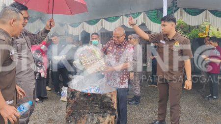 SANGGAU – Penjabat Sekretaris Daerah Kabupaten Sanggau, Drs. Aswin Khatib, M.Si menghadiri kegiatan pemusnahan barang bukti dari 73 perkara yang telah berkekuatan hukum tetap. Acara ini berlangsung di halaman Kantor Kejaksaan Negeri Sanggau Kabupaten Sanggau. Kamis (19/06/2025).